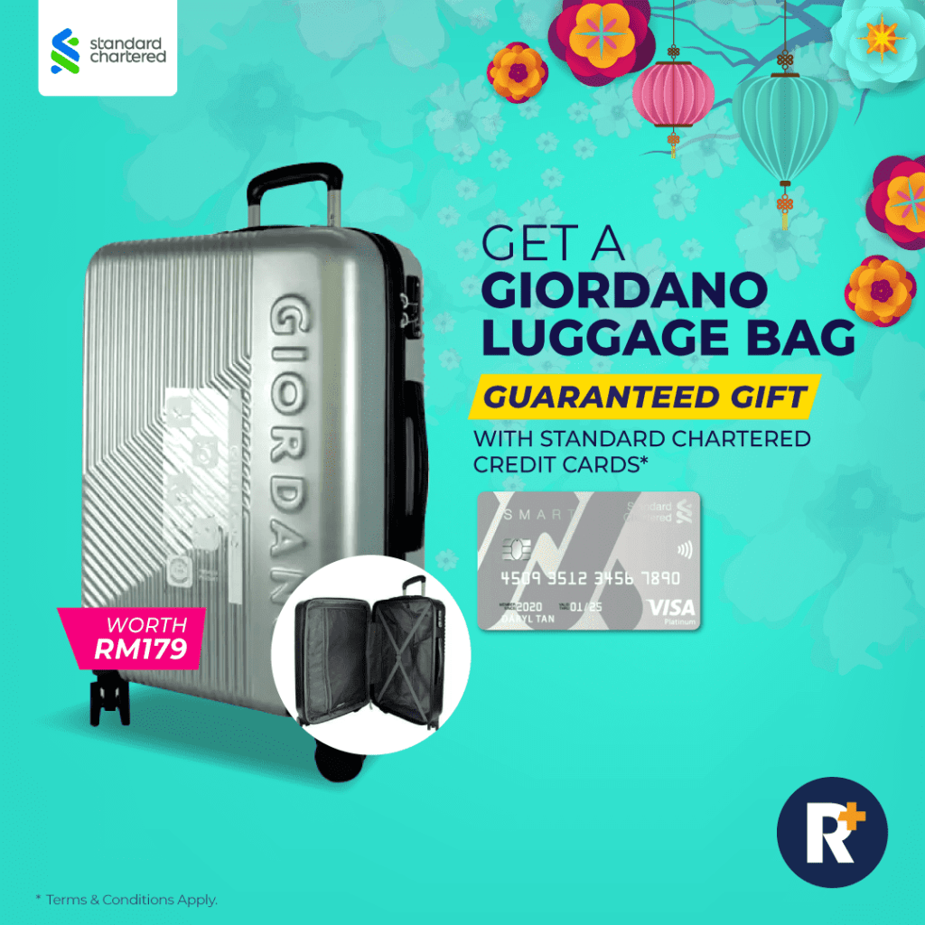 Standard Chartered is now giving ALL approved applicants a guaranteed gift – a luggage bag by Giordano! Show off this sleek-looking hard-shell Giordano luggage bag on your next trip out of town!