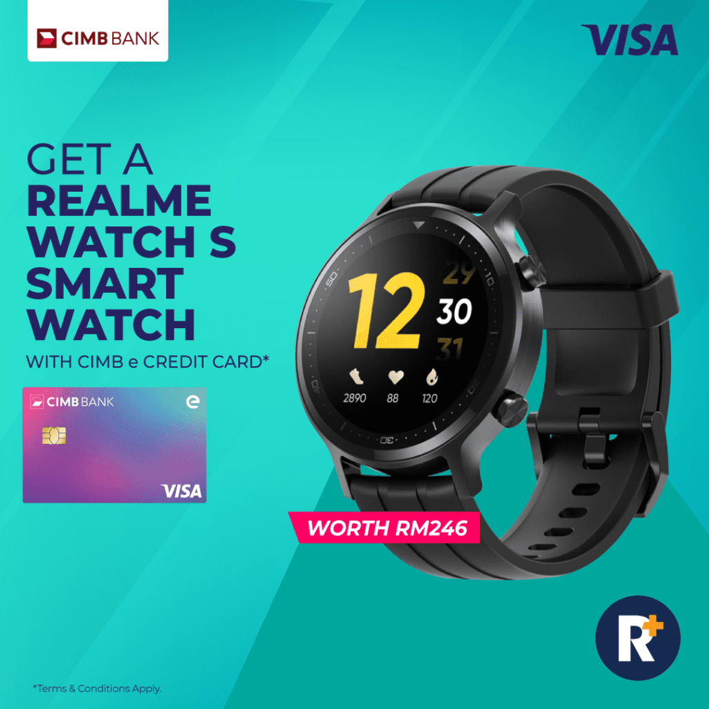 From 19 August to 1 September, CIMB is giving away smartwatch Realme Watch S to randomly selected credit card applicants. Just apply, activate, and perform the first swipe of any amount to be eligible for this gift!