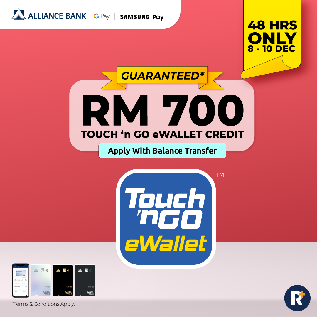 From 48 hours only, Alliance Bank is offering RM700 Touch ‘n Go eWallet Credit guaranteed when you apply with Balance Transfer.