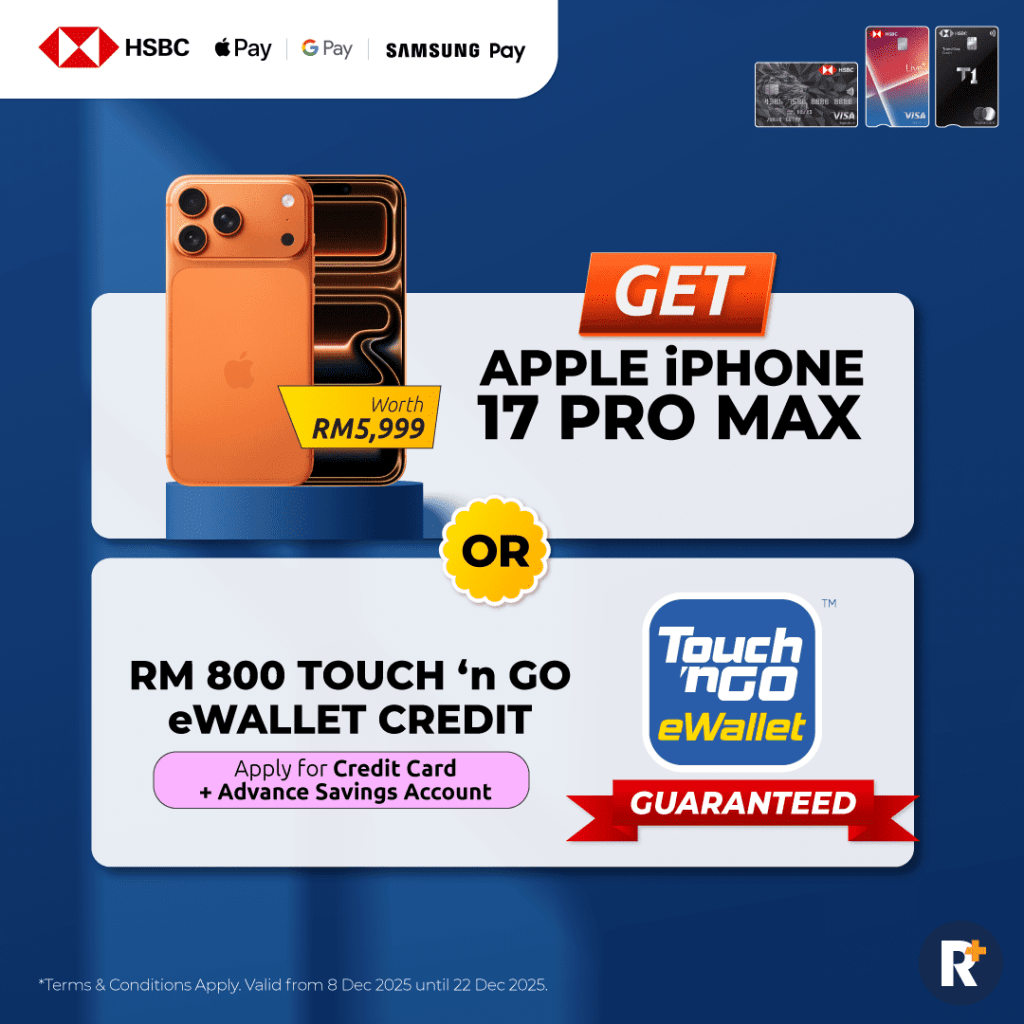 Even if you don’t snag the grand prize, don’t worry! You’ll still walk away with RM300 Touch ‘n Go eWallet credit guaranteed when you apply for your HSBC Mpower card with the Advance Account.