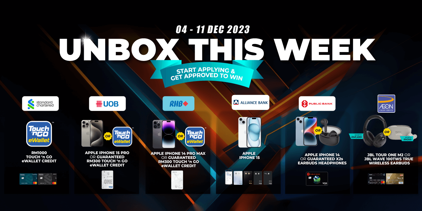 For those who are new to this campaign, Unbox This Week is a weekly event where we present to you fantastic weekly flash deals from our featured bank partners. All you need to do is apply for selected credit cards from these banks of the week through RinggitPlus and you’ll take home some great prizes.