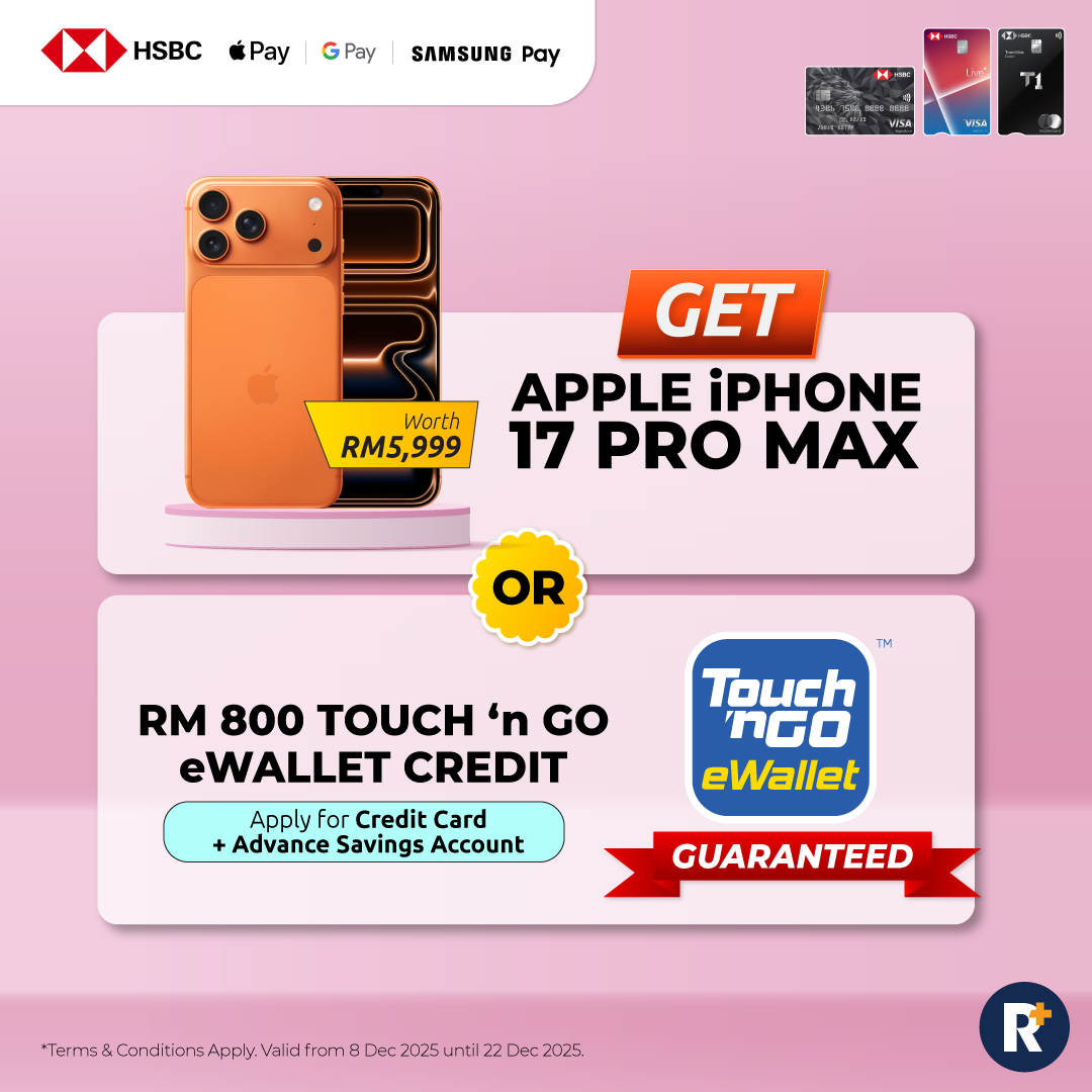 Even if you don’t snag the grand prize, don’t worry! You’ll still walk away with RM800 Touch ‘n Go eWallet credit guaranteed when you apply for your HSBC card with the Advance Account.