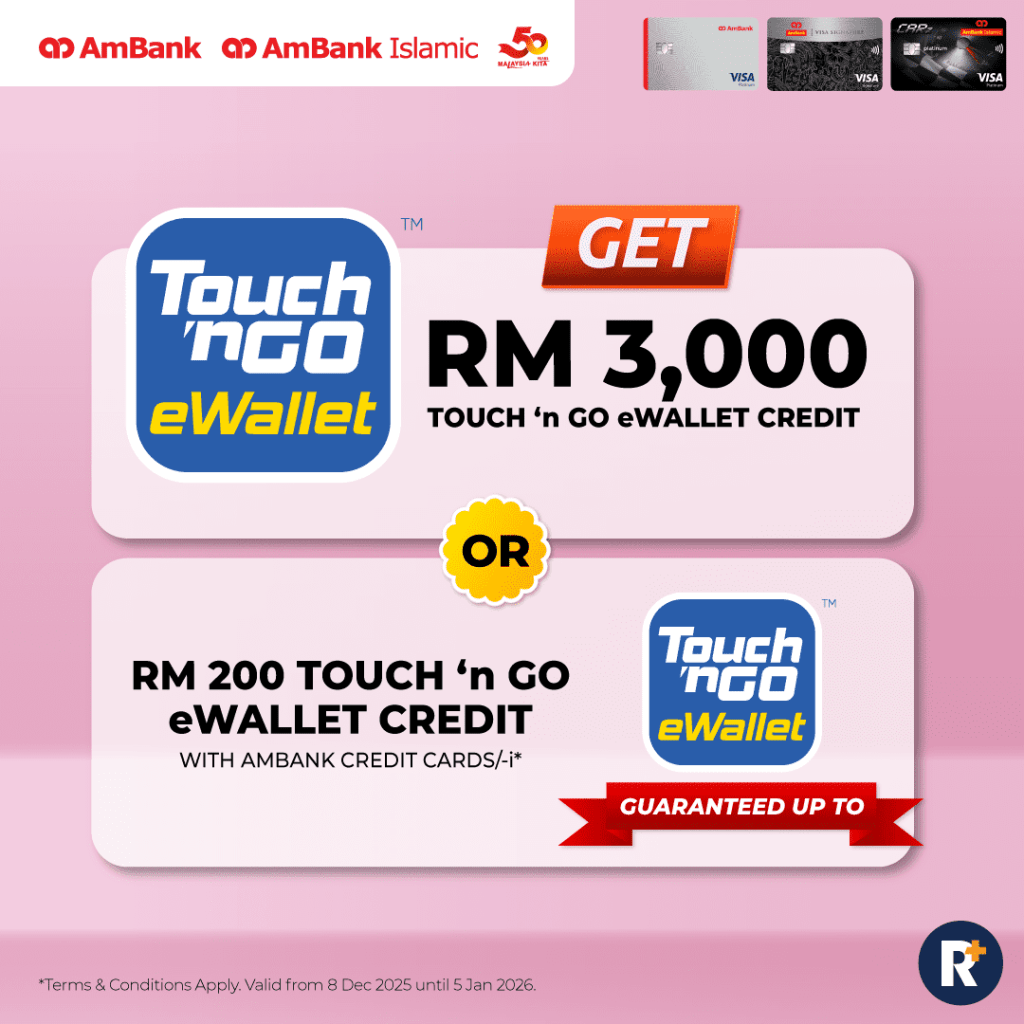 Apply for an Ambank Credit Card this week and you’ll stand a chance to win RM3,000 Touch ‘n Go eWallet Credit.
