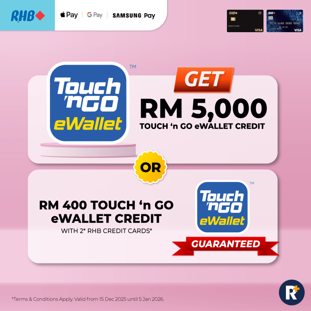 Don’t you just love cash prizes? Apply for an RHB Credit Card this week and you’ll stand a chance to win RM5,000 Touch ‘n Go eWallet Credit.