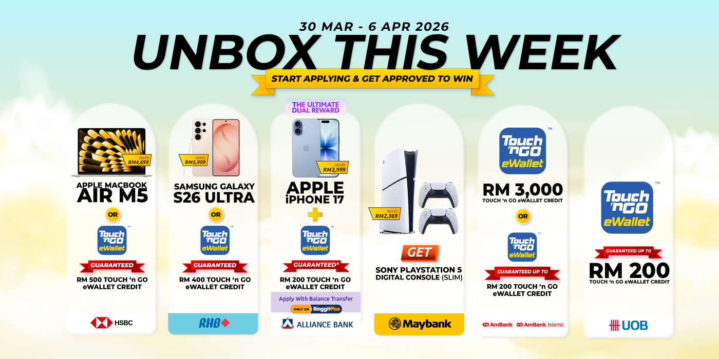 As we approach a new month, Unbox This Week is delivering a fresh new set of prizes! Apply for a credit card this week and you could unbox the Apple MacBook Air M5, Samsung Galaxy S26 Ultra, Sony PlayStation 5, or up to RM3,000 Touch ‘n Go eWallet Credit.