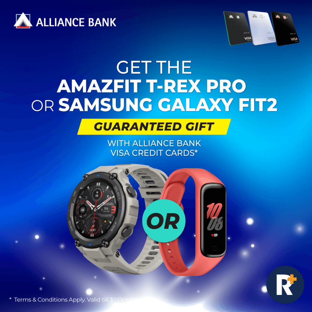 Get the guaranteed Amazfit T-Rex Pro Smartwatch which comes equipped with all the features needed for exploration and adventure! Built with military-grade toughness, you’ll take this gift home when you apply for an Alliance Bank Credit Card with Balance Transfer.