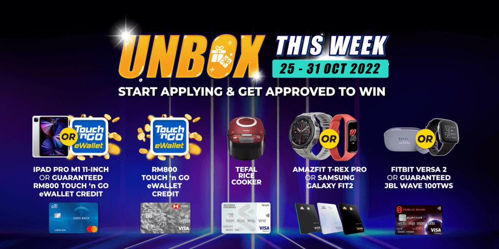 For those who are new to this campaign, Unbox This Week is a weekly event where we present to you fantastic weekly flash deals from our featured bank partners. All you need to do is apply for selected credit cards from these banks of the week through RinggitPlus and you’ll take home some great prizes.