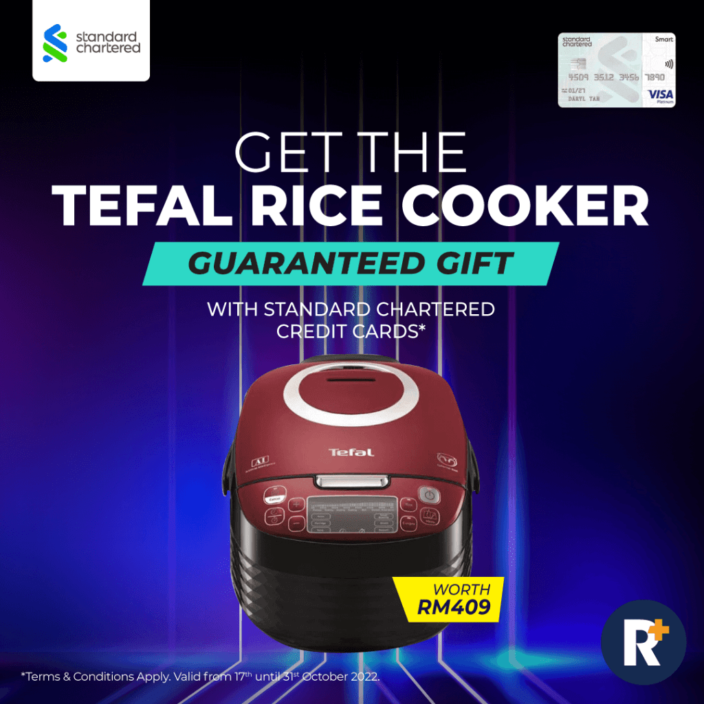 Take home a guaranteed Tefal Rice Cooker RK7405 when you apply for a Standard Chartered credit card. Equipped with a cutting-edge spherical bowl and Fuzzy Logic Artificial Intelligence, making rice isn’t only more convenient, but more evenly cooked like those cooked in traditional woks thanks to its excellent heat circulation.