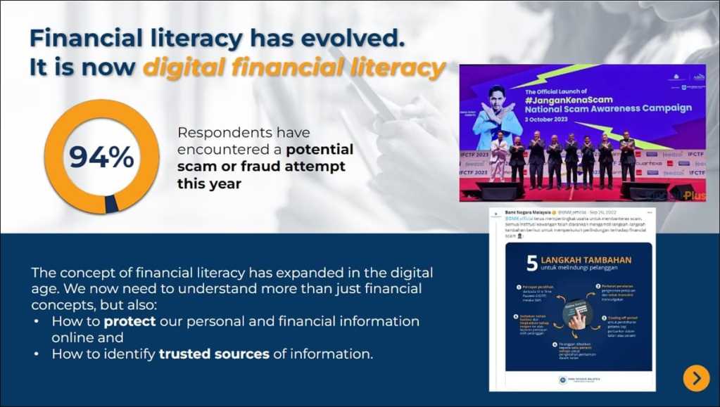 One of the key findings from the survey is that an astonishing 94% of respondents reported encounters with potential scams or fraud attempts this year, highlighting the pressing need for digital financial literacy among Malaysians.