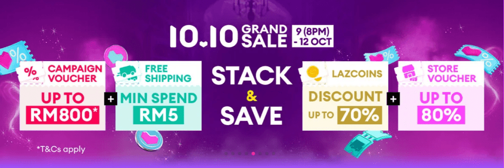 Mark your calendars! Lazada’s 10.10 Grand Sale kicks off at 8 PM on 9 October and runs through 12 October 2025, bringing you incredible discounts, vouchers, and free shipping!