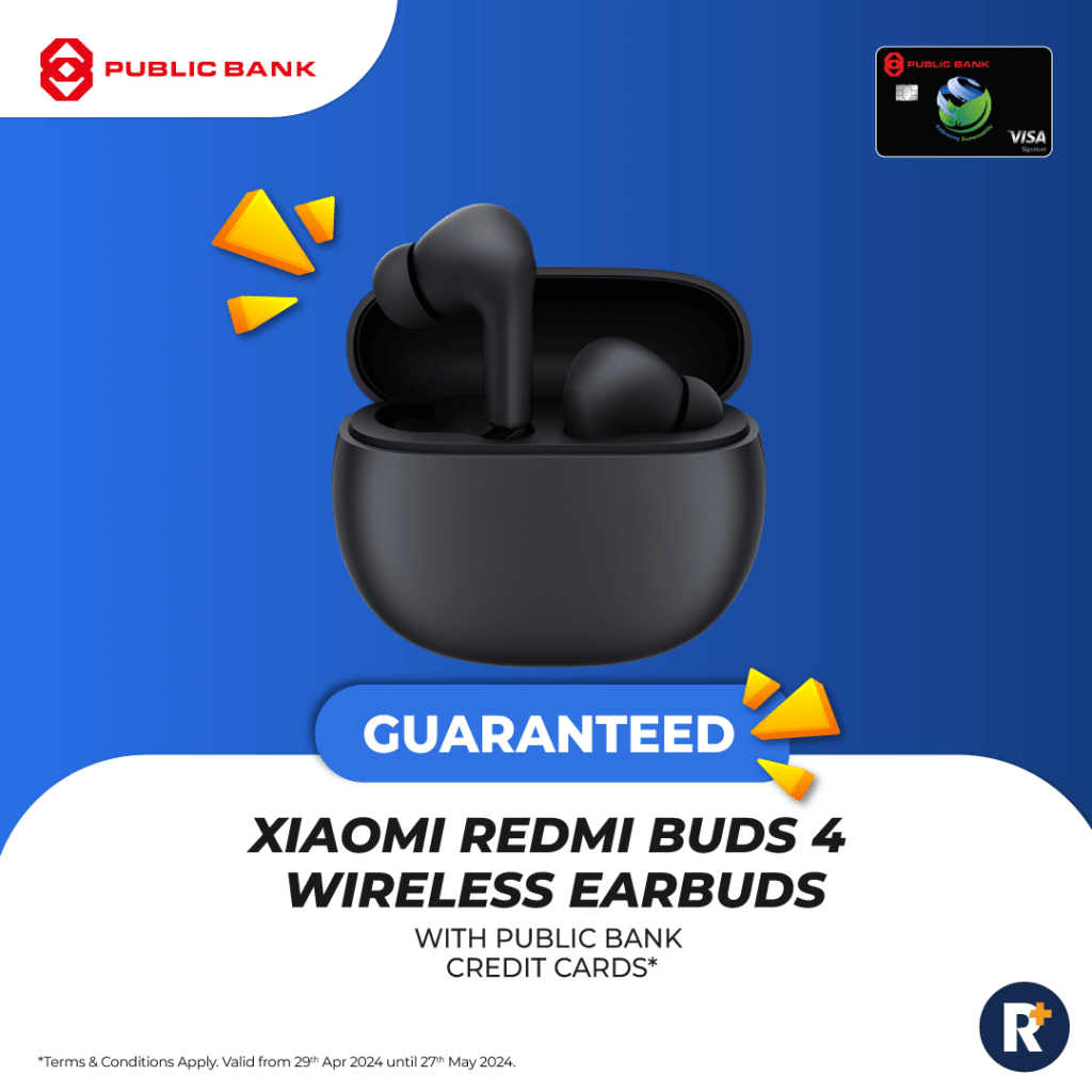Seize the opportunity to receive a guaranteed pair of Xiaomi Redmi Buds 4 when you apply for a Public Bank Credit Card!