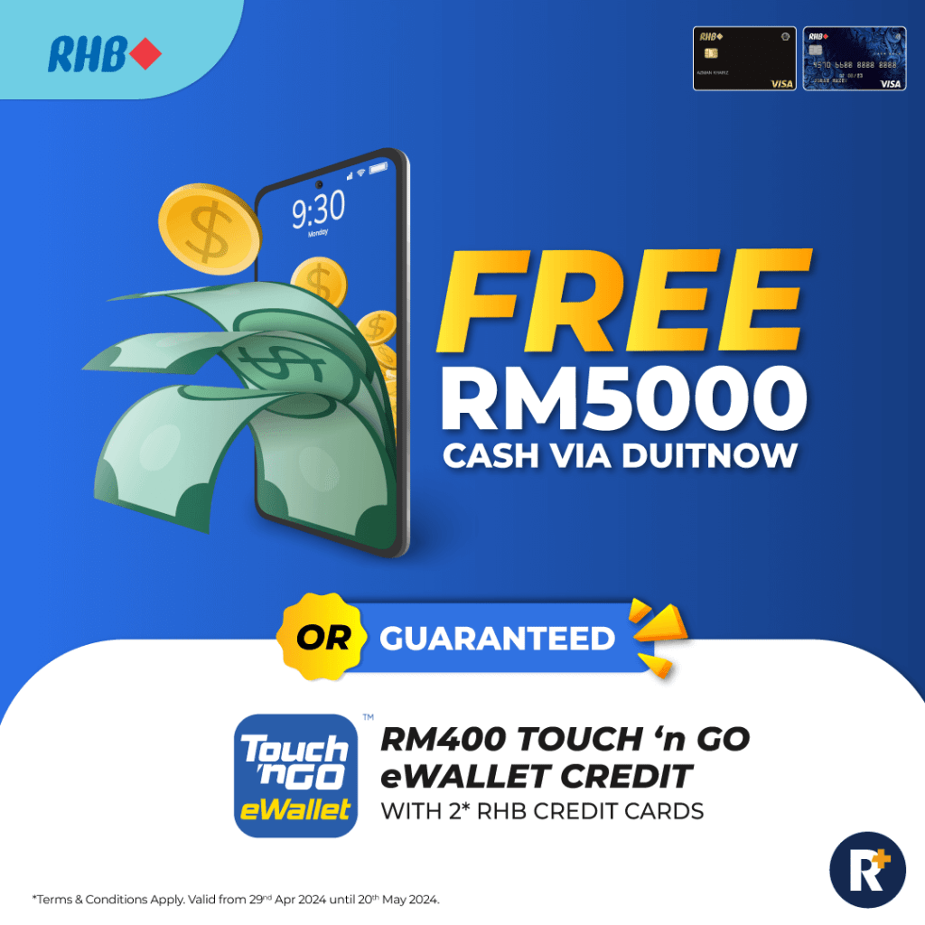 Love cash prizes? Apply for an RHB Credit Card today and you could win RM5,000 Cash via DuitNow. Use it to kickstart your investment, pay off your debts, fund your dream vacation, or simply save it – the choice is yours!