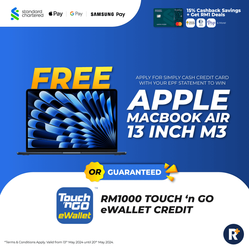 Apply for a Standard Chartered credit card this week and stand a chance to win a MacBook Air M3, a cutting-edge laptop that comes equipped with the new M3 chip and boasts up to 19 hours of battery life. With its lightweight aluminium body, the MacBook Air M3 is both durable and portable, making it an ideal choice for today’s creative professionals.