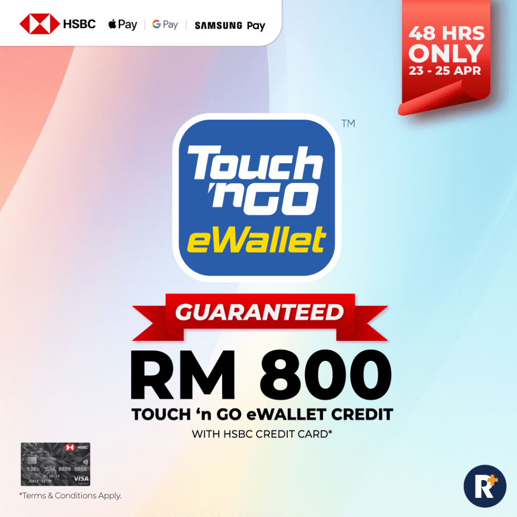 For 48 hours only! Get RM800 Touch ‘n Go eWallet Credits when you apply for an HSBC credit card.