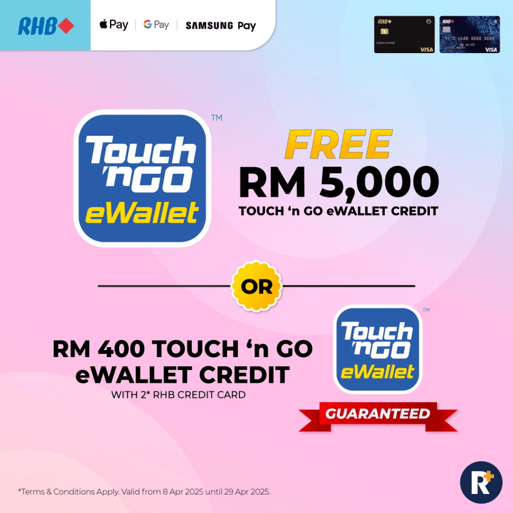 What’s this? Another cash prize! Stand a chance to win RM5,000 Touch ‘n Go eWallet Credits when you apply for a RHB Credit Card.