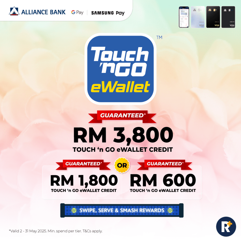 What’s this? Another cash prize! Apply for an Alliance Visa Platinum Credit Card and take home RM3,800 Touch ‘n Go eWallet Credits, RM1,800 Touch ‘n Go eWallet Credits, RM600 Touch ‘n Go eWallet Credits OR RM200 Touch ‘n Go eWallet Credits guaranteed!