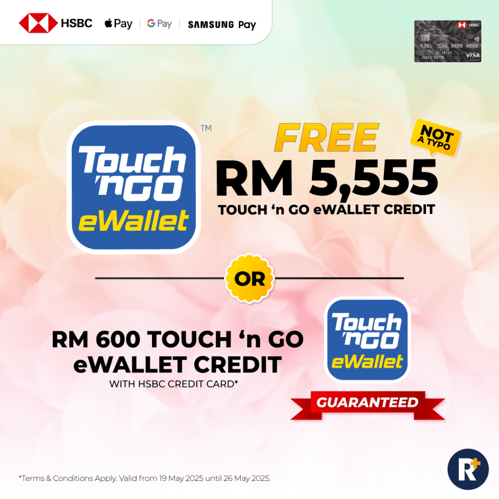 Apply for an HSBC Visa Signature or Live+ Credit Card and stand a chance to win the RM5,555 Touch ‘n Go eWallet Credits! Yes, it’s not a typo!