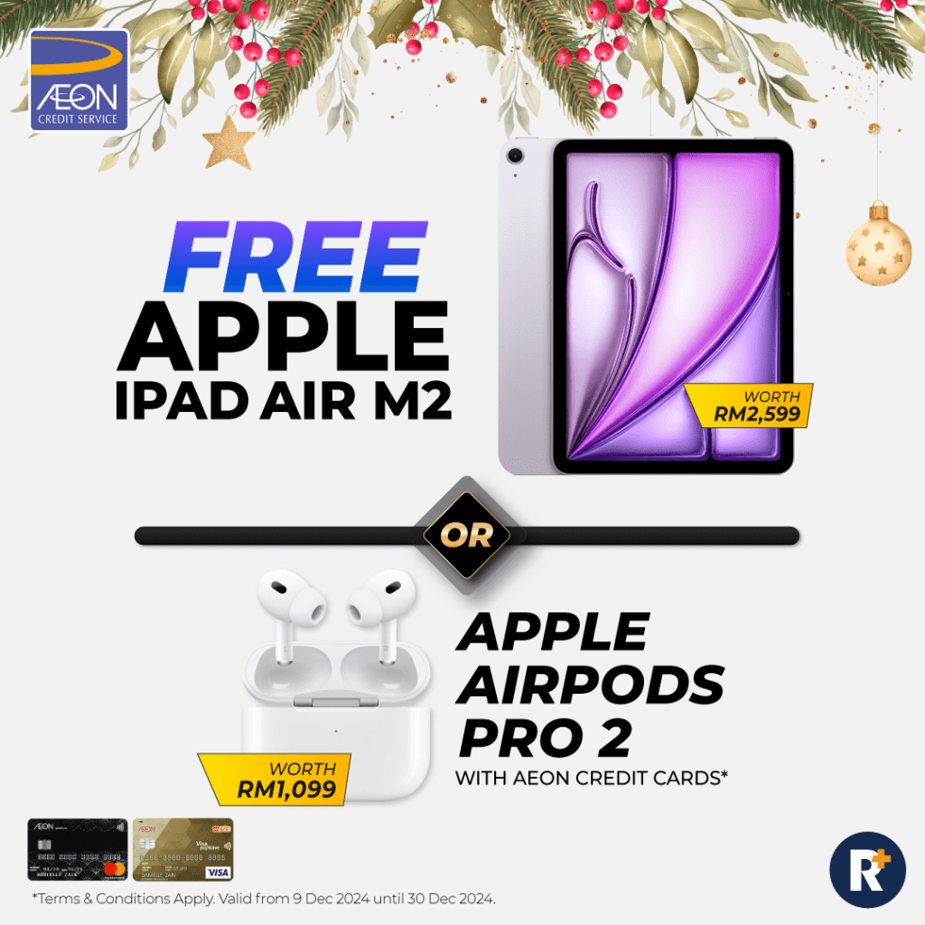 The iPad Air M2 could be yours when you apply for an AEON Platinum card. Didn’t win? You’ll still be getting guaranteed RM300 cash via DuitNow!