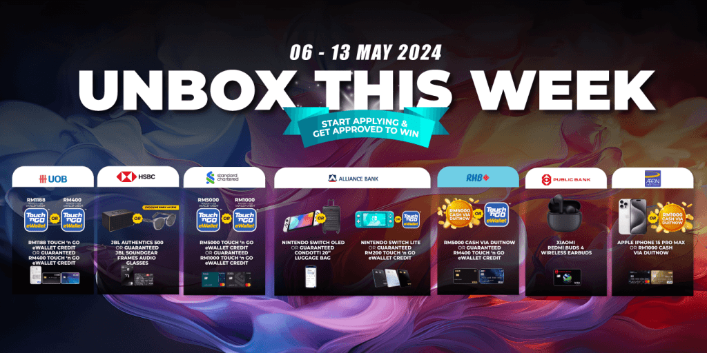 For those who are new to this campaign, Unbox This Week is a weekly event where we present to you fantastic weekly flash deals from our featured bank partners. All you need to do is apply for selected credit cards from these banks of the week through RinggitPlus and you’ll take home some great prizes.From 6 May to 13 May, our featured bank partners are none other than UOB, HSBC, Public Bank, Alliance Bank, RHB, Standard Chartered, and AEON Credit. So, if you’ve considered applying for a credit card with any of these banks, you know what to do to get more out of your application!