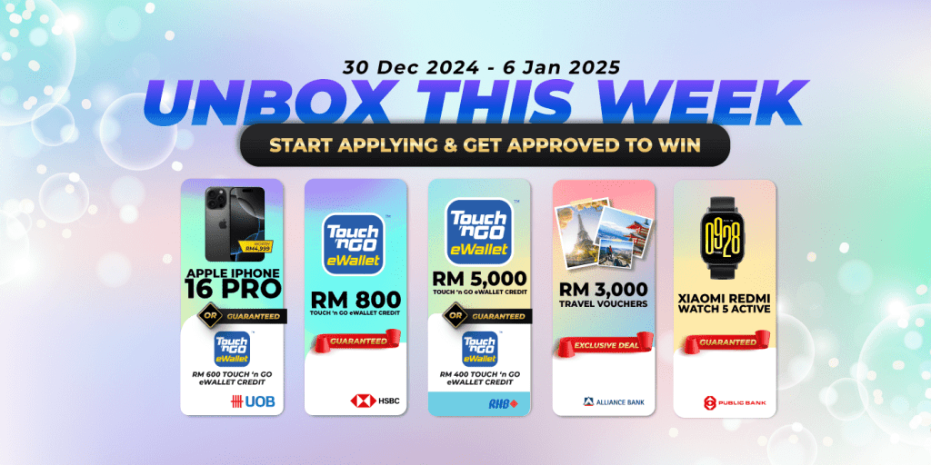 Usher in 2025 with amazing prizes on Unbox This Week with RinggitPlus! Win the iPhone 16 Pro, RM5,000 Touch ‘n Go eWallet Credits or even walk away with the JBL Soundgear Frames Audio Glasses guaranteed, and more when you apply for a credit card via RinggitPlus.