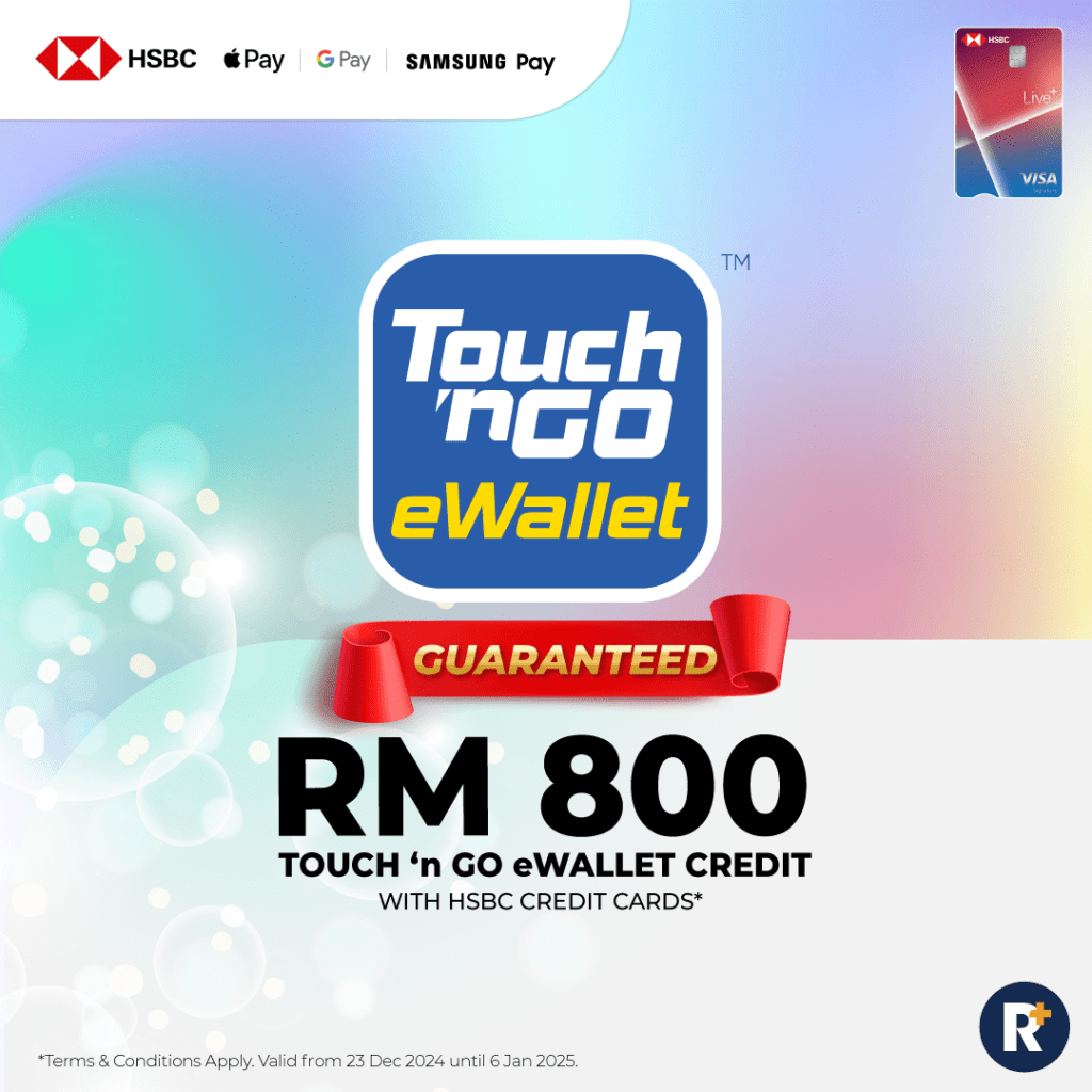 Don’t you just love getting cash? Apply for a HSBC Live+ Credit Card and you could be walking away with RM800 TOuch ‘n Go eWallet Credits, guaranteed!