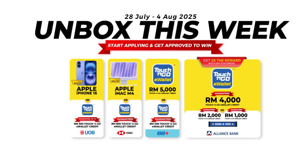 Want to snag some new tech and cash with your next credit card application? Unbox This Week with RinggitPlus makes it happen! Apply for a credit card through us and you could win the iPhone 16, an iMac M4, or secure cash prizes!