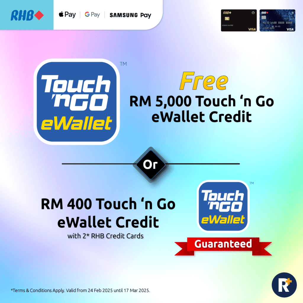 What’s this? Another cash prize awaits! Stand a chance to win RM5,000 Touch ‘n Go eWallet Credits when you apply for a RHB Credit Card.