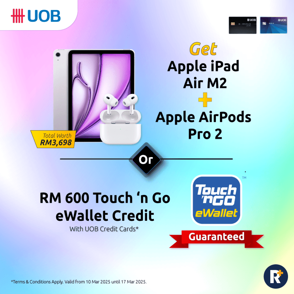 Apply for a UOB Credit Card this week and stand a chance to win BOTH the iPad Air 11-inch (M2) AND the AirPods Pro 2.