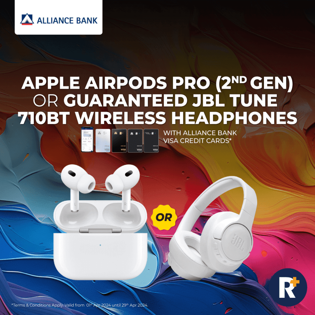 Didn’t win the Apple AirPods Pro? You’ll still be guaranteed JBL 710 BT headphones when you apply for an Alliance Bank Credit Card with Balance Transfer, and Redmi Buds 4 earphones when you apply for an Alliance Bank Credit Card without Balance Transfer.