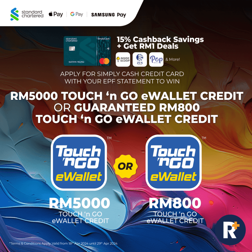 Looking to boost your spending power? You could be scoring RM5,000 TNG eWallet Credit when you apply for a Standard Chartered Credit Card!