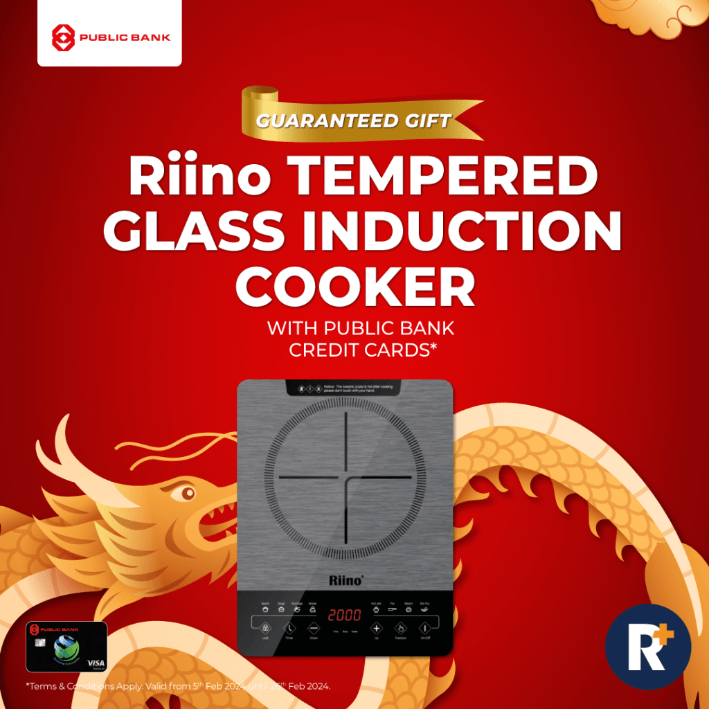 Get a guaranteed Riino Tempered Glass Induction Cooker featuring a sleek and ultra-slim design with a durable tempered glass cooktop, ensuring effortless cleanup after each use when you apply for a Public Bank Credit Card.