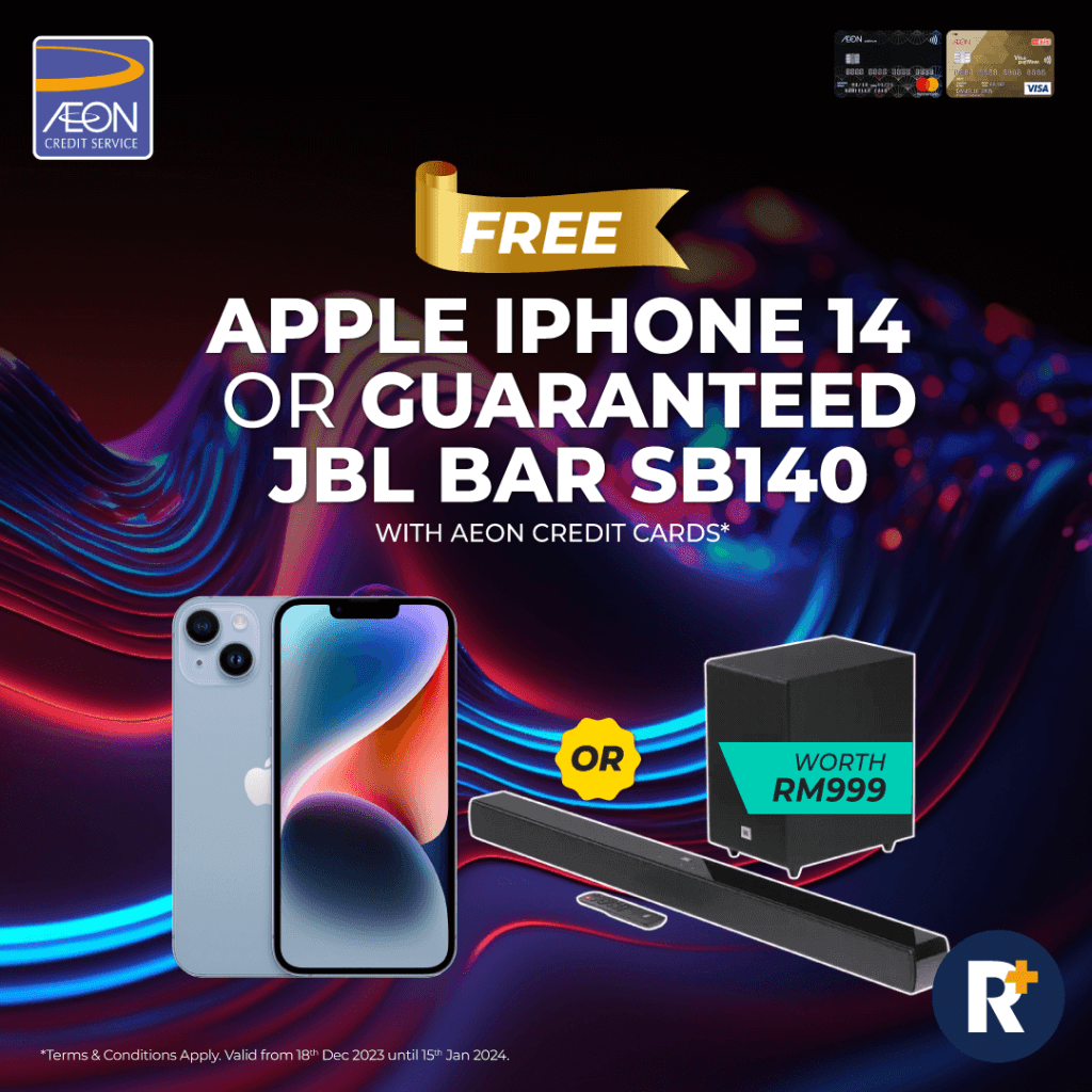 Did not win the iPhone 14? The JBL Bar SB140 could also be yours when you apply for an AEON Platinum Card or AEON Gold Card. With 110W power output and Dolby Digital Embedded, turn your living room into a cinematic experience with clear surround sound.