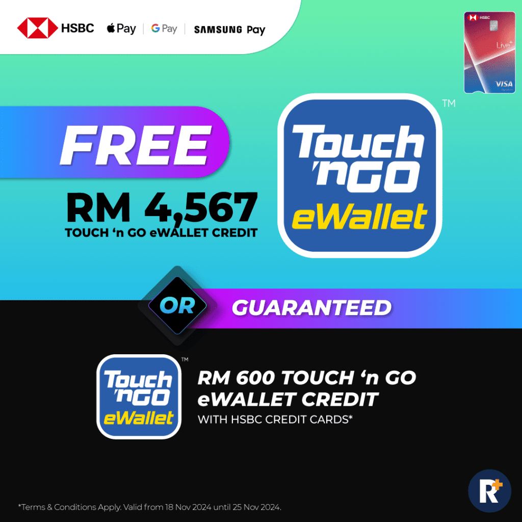 If you don’t win the grand prize, you’ll still receive RM600 in guaranteed Touch ‘n Go eWallet credits when you apply for the HSBC Live+ Credit Card.