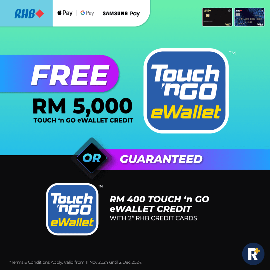 Here’s your opportunity to win RM5,000 in Touch ‘n Go eWallet credits when you apply for an RHB Credit Card. Use these credits for transportation, shopping, dining, and other cashless transactions with ease.