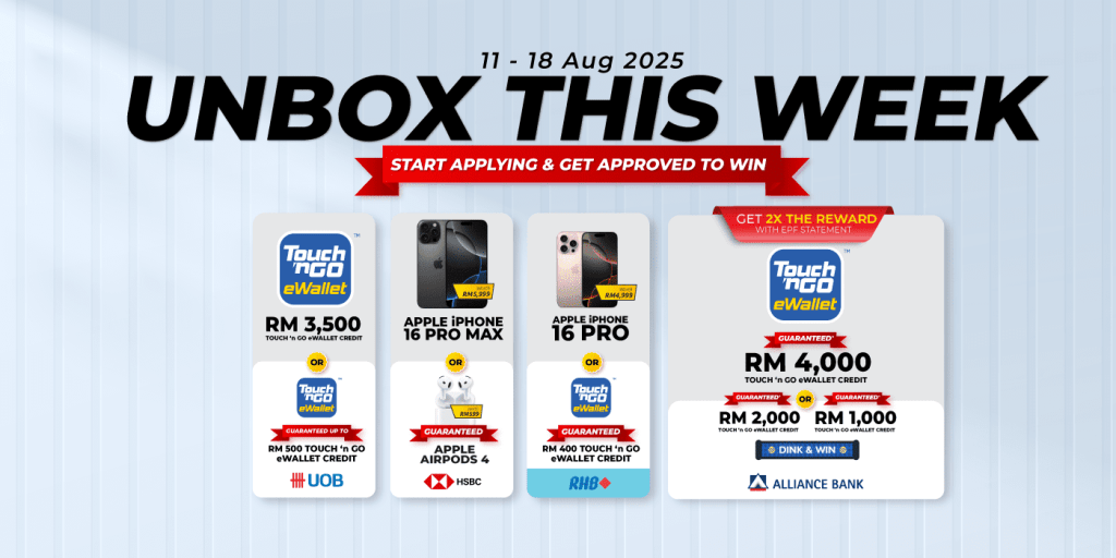 Another round of amazing gifts to take home on Unbox This Week! Apply for a credit card through RinggitPlus and you could be walking away with the latest iPhones, or even secure up to RM4,000 Touch ‘n Go eWallet Credits guaranteed.