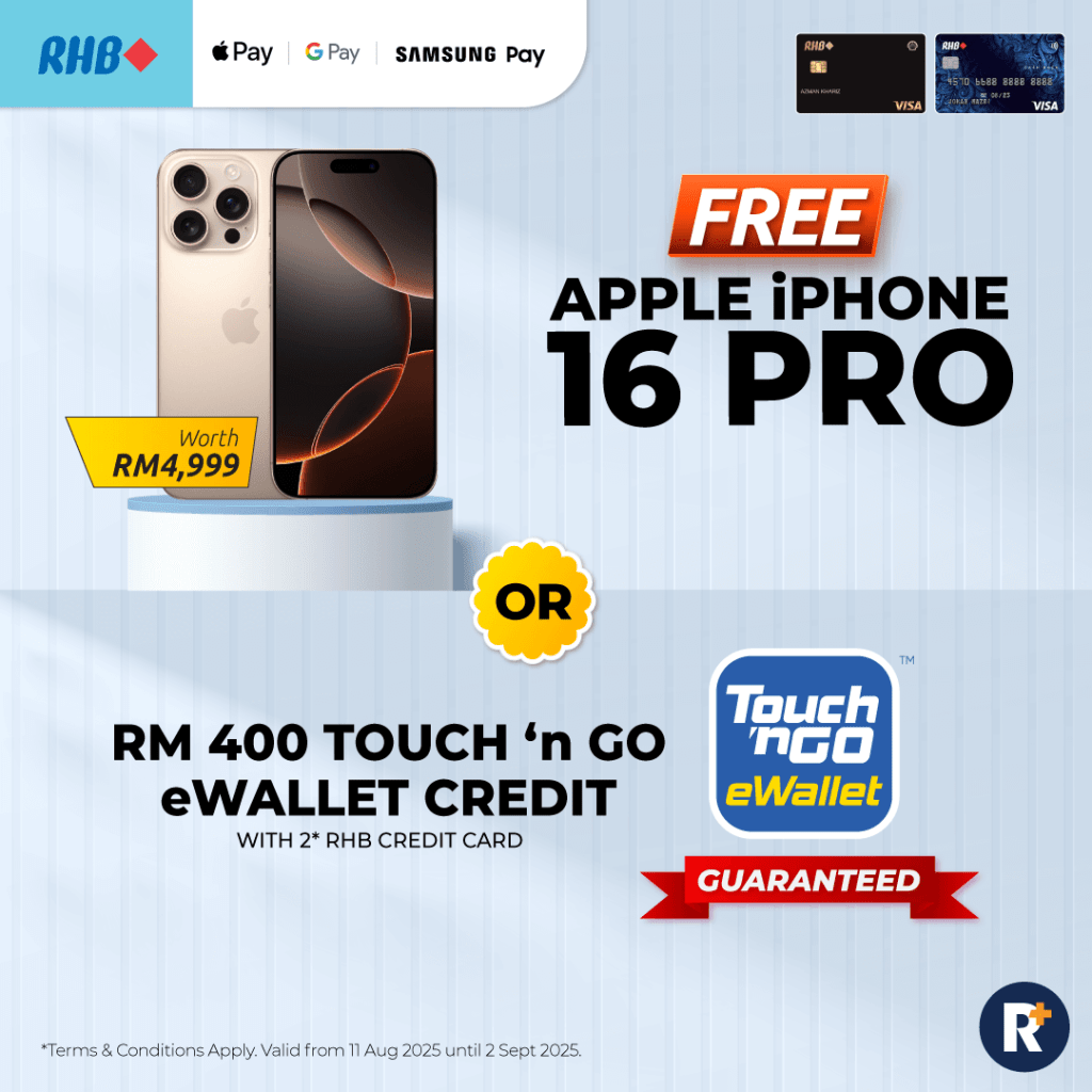 Another iPhone? Apply for an RHB Credit Card this week and you’ll stand a chance to win the iPhone 16 Pro!