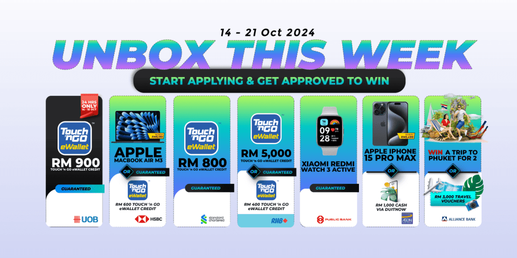 Unbox this week is back again with some of the most anticipated prizes ever given away on RinggitPlus! Win a trip for 2 to Phuket, Apple MacBook Air M3, or even walk away with RM5,000 Touch ‘n Go eWallet Credits and more when you apply for a credit card via RinggitPlus.