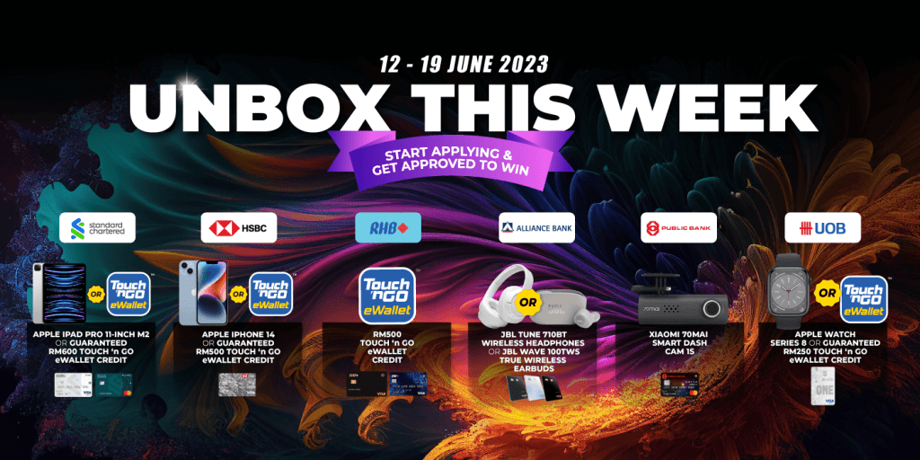For those who are new to this campaign, Unbox This Week is a weekly event where we present to you fantastic weekly flash deals from our featured bank partners. All you need to do is apply for selected credit cards from these banks of the week through RinggitPlus and you’ll take home some great prizes.