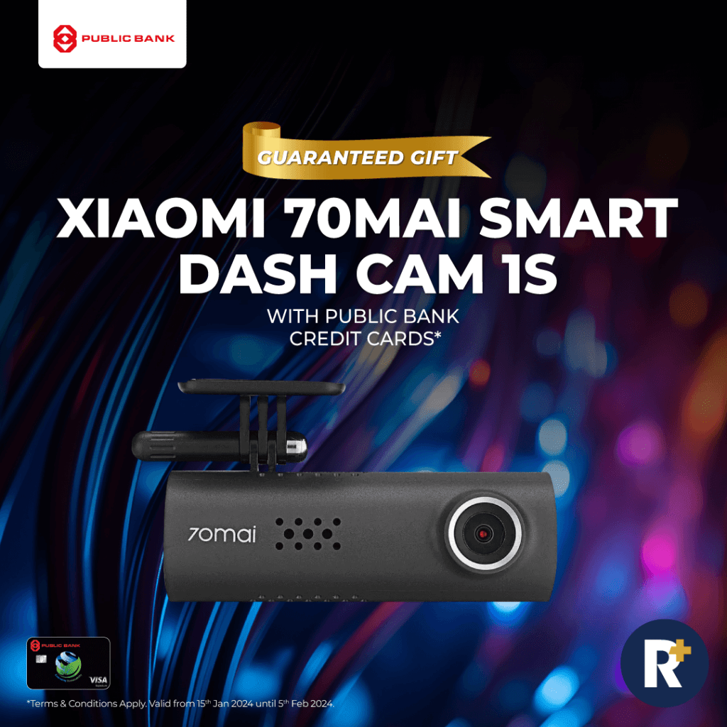 Take home the Xiaomi 70Mai Smart Dash Cam 1S guaranteed when you apply for a Public Bank credit card, capable of capturing high-quality video on the road, especially during unexpected incidents, with its 1080p resolution.