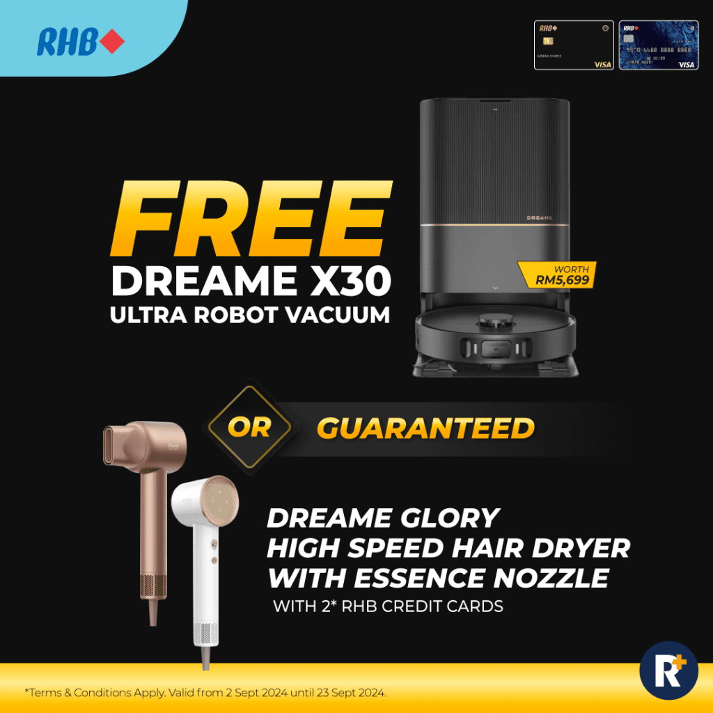 Who doesn’t love a clean home? Stand a chance to win the Dreame X30 Ultra Robot Vacuum when you apply for a RHB Credit Card.