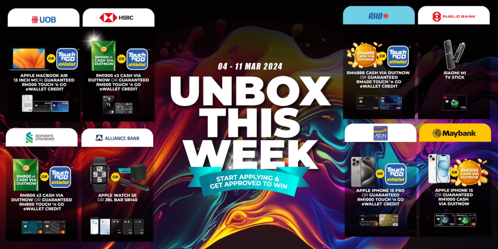 For those who are new to this campaign, Unbox This Week is a weekly event where we present to you fantastic weekly flash deals from our featured bank partners. All you need to do is apply for selected credit cards from these banks of the week through RinggitPlus and you’ll take home some great prizes.