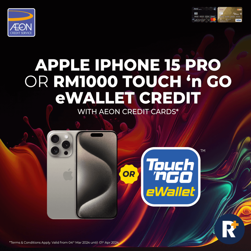 Apply for an AEON Platinum Card and stand a chance to take home the all-new Apple iPhone 15 Pro to elevate your mobile experience with its USB-C charging port and a 48MP Main camera, making it an ideal smartphone for professional and leisure activities.