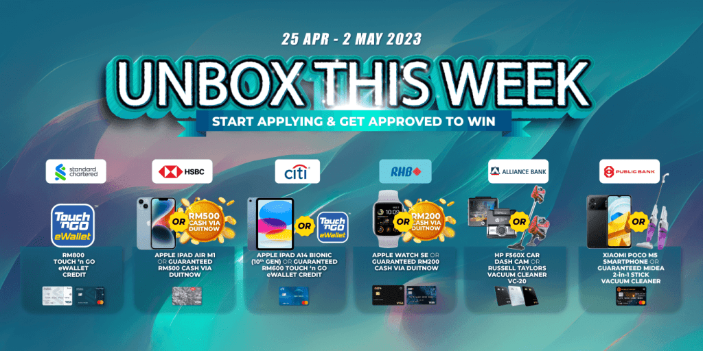 For those who are new to this campaign, Unbox This Week is a weekly event where we present to you fantastic weekly flash deals from our featured bank partners. All you need to do is apply for selected credit cards from these banks of the week through RinggitPlus and you’ll take home some great prizes.