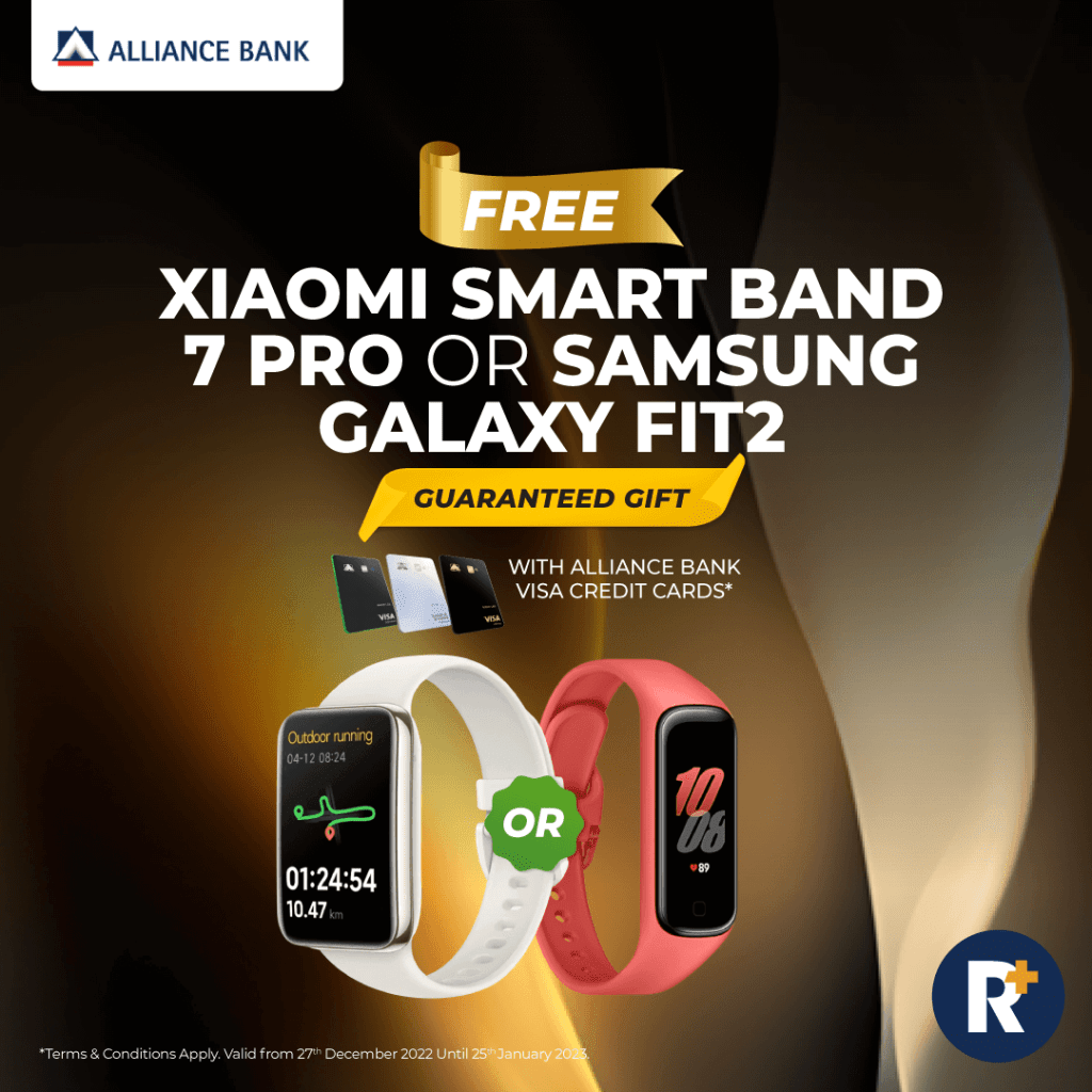 Apply for a new Alliance Bank Credit Card to take home a Xiaomi Smart Band 7 Pro or Samsung Galaxy Fit2!