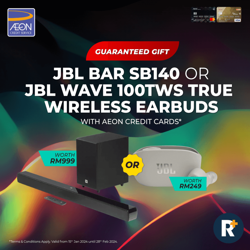 You are guaranteed to receive the JBL Bar SB140 soundbar upon applying for an AEON Platinum Card, while applying for an AEON Gold Card gives you the chance to win it!