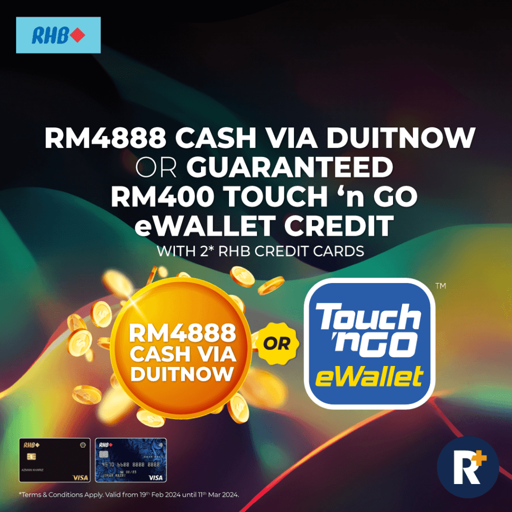 Boost your finances when you sign up for an RHB Credit Card and take home RM4888 Cash via DuitNow!