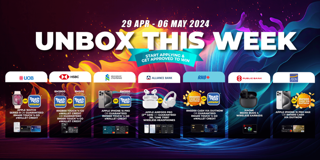 For those who are new to this campaign, Unbox This Week is a weekly event where we present to you fantastic weekly flash deals from our featured bank partners. All you need to do is apply for selected credit cards from these banks of the week through RinggitPlus and you’ll take home some great prizes.