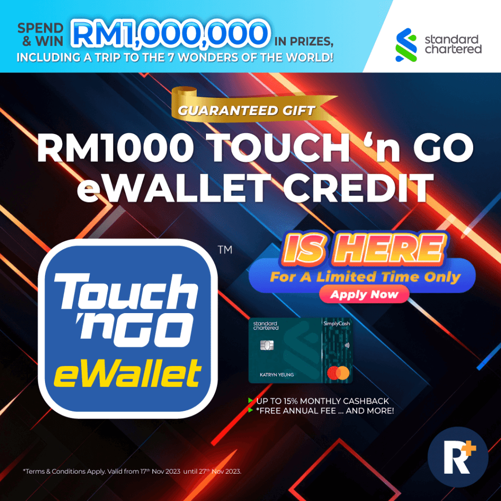 Take home a guaranteed RM1000 TNG eWallet Credit when you apply for a Standard Chartered Credit Card this week with your EPF Statement. With RM1000 in TNG eWallet Credit, you could use it to ease your month-end expenses, pay your utility bills, treat yourself to your favourite meal, and more.