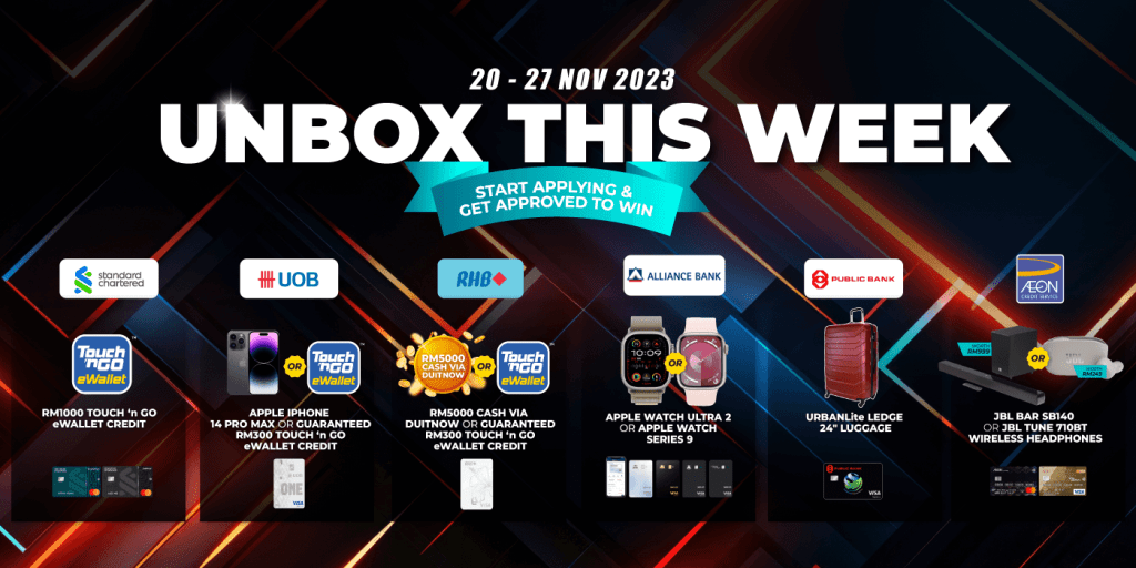 For those who are new to this campaign, Unbox This Week is a weekly event where we present to you fantastic weekly flash deals from our featured bank partners. All you need to do is apply for selected credit cards from these banks of the week through RinggitPlus and you’ll take home some great prizes.