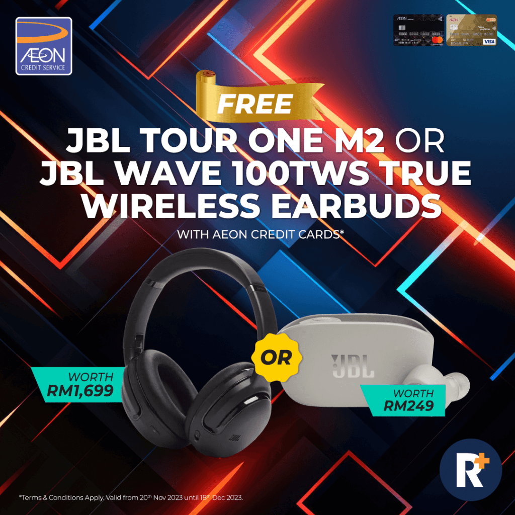 Meanwhile, the JBL Wave 100TWS is guaranteed to be yours when you apply for an AEON Gold Card or AEON Platinum Card. Offering up to 20 hours of battery life, these earbuds ensure you have a long and immersive audio experience wherever you go.